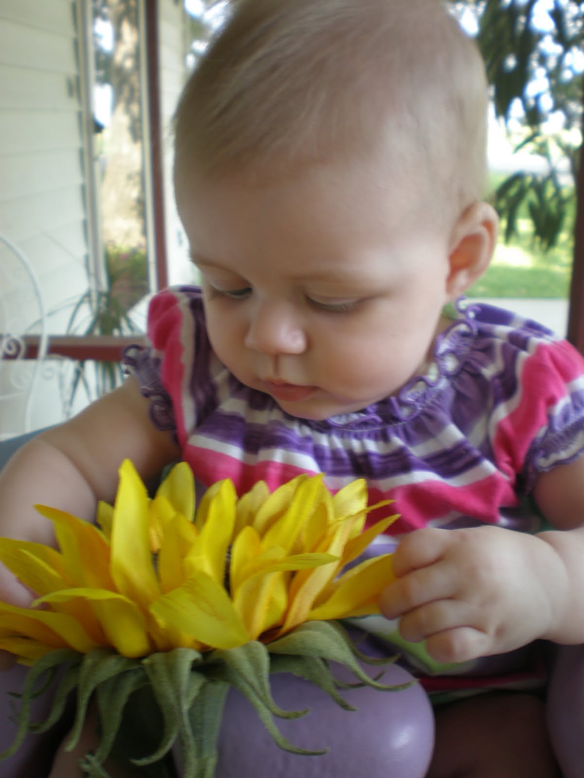 She loves to be outside and I think she's gonna love flowers just as much as her momma. Her laugh is contagious. She adores her brother and thinks he is funny.